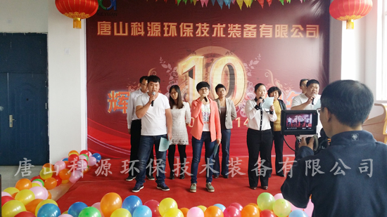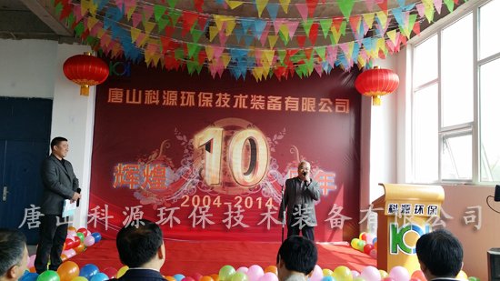 2014年4月12日,唐山科源環(huán)保技術(shù)裝備有限公司成立十周年慶典活動(dòng)在公司新廠區(qū)舉行。在慶典大會(huì)上,總經(jīng)理苑衛(wèi)軍發(fā)表致辭并對(duì)科源公司的發(fā)展進(jìn)行了回顧與展望,新老員工代表以及部分同志也分別發(fā)表感言,期間也進(jìn)行了豐富的文藝表演,慶典活動(dòng)在全體員工的共同參與下,取得了圓滿的成功。