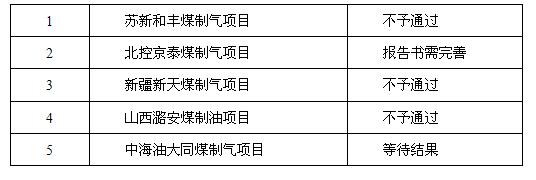 2015年上半年煤化工項(xiàng)目環(huán)評結(jié)果: