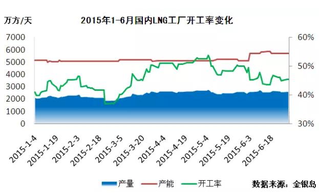 以LNG生產(chǎn)大省內(nèi)蒙、寧夏、陜西為例,僅2015年上半年就累計(jì)新增產(chǎn)能480萬(wàn)方/天。為此,LNG液化廠不得不大幅削減開工率,2015年上半年,中國(guó)LNG工廠開工率平均不及50%,最低時(shí)甚至低于40%。